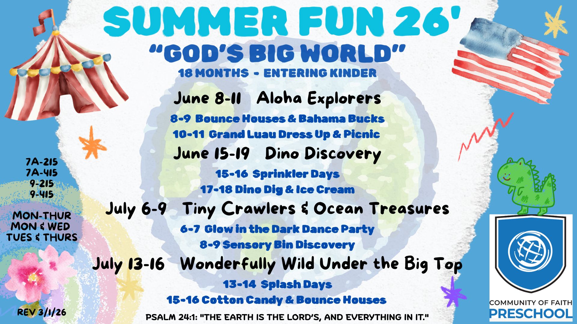 Having introduced our new curriculum of "Frog Street" for the 3's and younger and our "Learning Without Tears" for our Pre K students, we see it has been a game changer. This allows the students to learn and grow spiritually, cognitively, physically, emotionally and socially. Our staff has a calling to teach with excellence and honor and this reflects in the classroom. This creates the opportunity for led activities where they work in small groups along with hands-on experiences and imaginative play. Our student-teacher ratio is lower than most schools and we also provide 2 teachers per class. We value what we offer and work hard to create an amazing, fun, and safe environment for all.